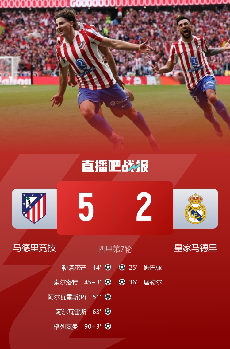 阿斯报点评这便是“作风”问题。皇马跑动最多的东谈主是巴尔韦德,距离为10.03公里,然则马竞有足足5东谈主比巴尔韦德还高,辩认是:科克12.6公里、朱利亚诺-西蒙尼11.2公里、巴里奥斯11.1公里、阿尔瓦雷斯10.3公里和冈萨雷斯10.5公里。