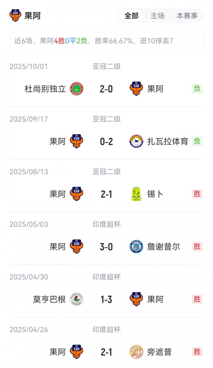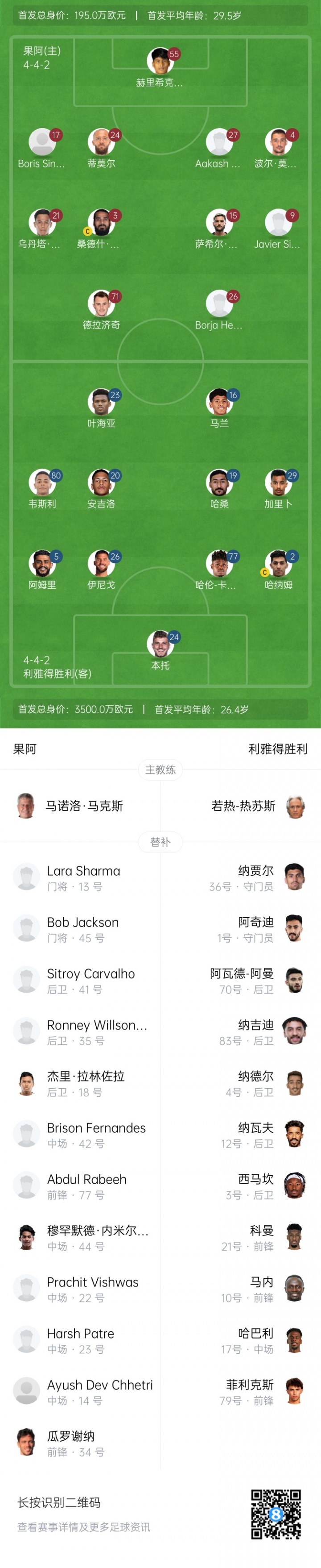 本场比赛前,利雅得告捷2战全胜,积6分排行小组第1;果阿两战王人墨小组垫底。