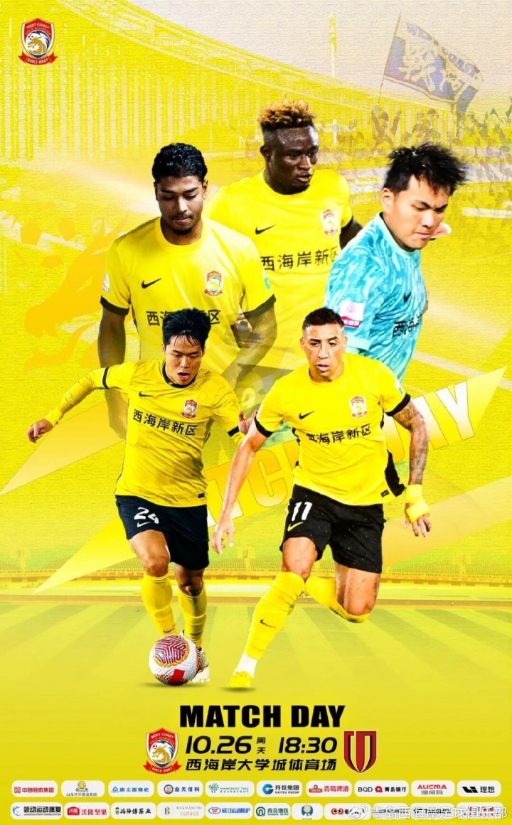 青岛西海岸替补:26-王晗懿、37-东航、77-戚秉宇、13-宋浩宇、8-张修维、14-冯刚、68-方海洋、30-刘小龙、39-刘柏杨、56-高迪、99-鄢奇航