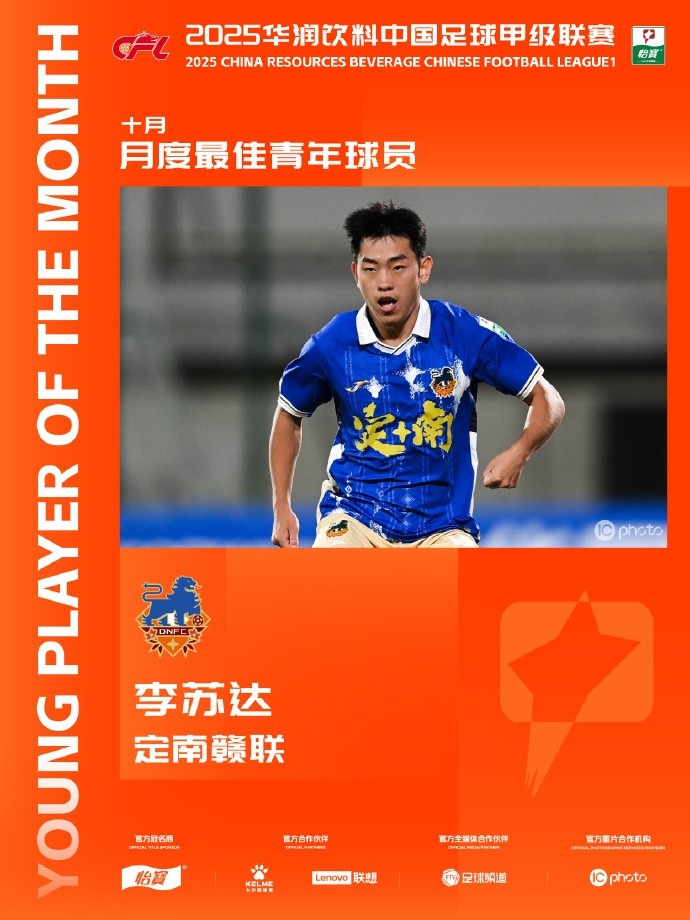 11月27日讯 中甲联赛官方公布了10月最好后生球员,定南赣联的李苏达当选。