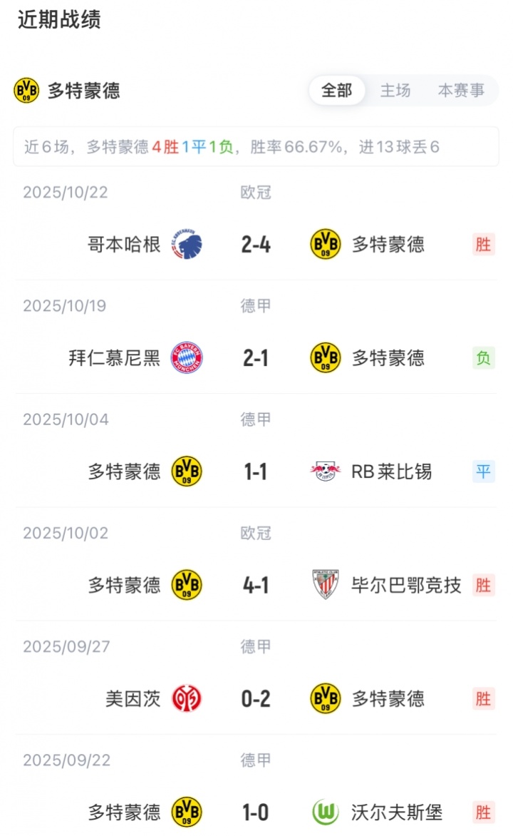 10月25日讯 德甲第8轮,多特主场迎战科隆比赛行将打响。赛前首发出炉。