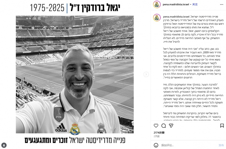 11月02日讯 据以色列皇马球迷会说明,在上周末的西班牙国度德比中,别称以色列的皇马球迷伊加尔-布罗德金因腹黑骤停不欣然亏损,享年50岁。