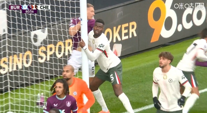 伯恩利角球契机,巴迪亚西勒角球注重时将伯恩利球员挤出底线,被裁判出示黄牌。