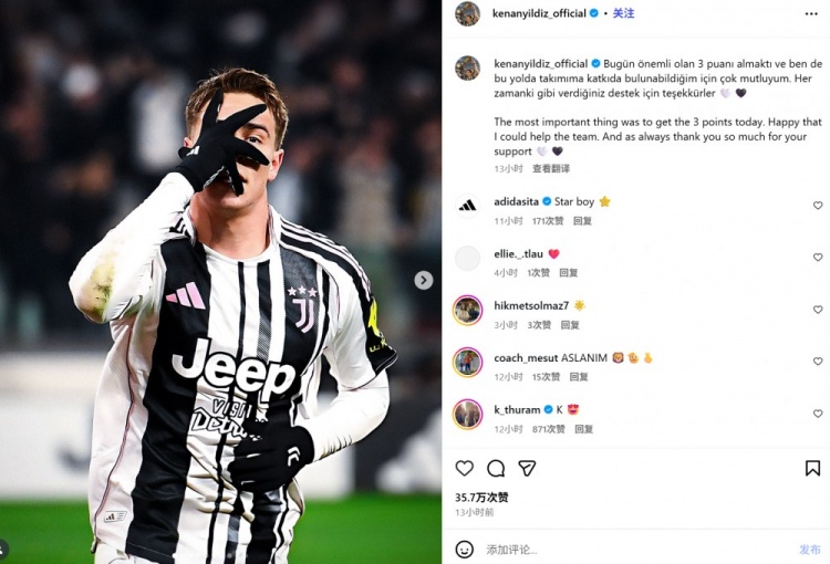 11月30日讯 尤文在本轮意甲2-1打败卡利亚里,伊尔迪兹连场发达出色,完成双响。