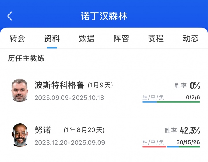 本赛季英超开赛8轮,诺丁汉丛林先后解雇了努诺和波斯特科格鲁,其中波斯特科格鲁甚而只带队39天就惨遭下课。诺丁汉丛林现在8轮5分位列英超左迁区,距离安全区差2分。