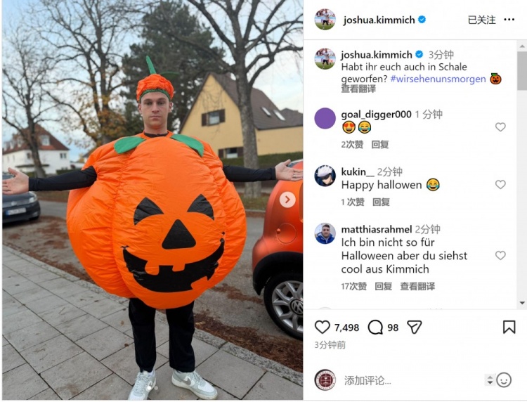 11月1日讯 拜仁中场基米希更新社媒动态,晒出我方的万圣节装璜。