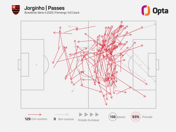 据Opta统计,若日尼奥本场比赛收效传球129次,本赛季巴甲单场收效传球第二多,仅次于若日尼奥我方对阵维多利亚一役的132次收效传球。