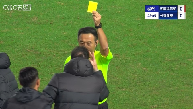 10月19日讯 中超第27轮,河南vs长春亚泰,比赛第42分钟,河南队蹙迫廓清越位但边裁未举旗,最终变为河南队的角球。亚泰主帅苏亚雷斯对这个判罚终点活气,被裁判出示黄牌。