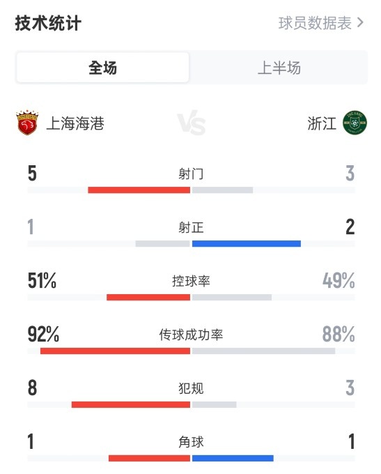 10月31日讯 中超第29轮,上海海港上半场暂1-0浙江。