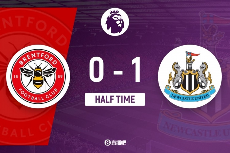 伤停补时5分钟。上半场比赛纪律,布伦特福德0-1纽卡斯尔联。