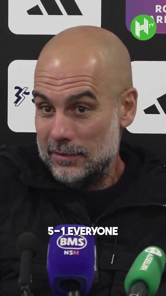 12月03日讯 英超第14轮,曼城客场5-4打败富勒姆,曼城在5-1罕见后连丢3球,委果痛失好局。赛后新闻发布会,瓜迪奥拉离开前跟记者们开起了打趣。