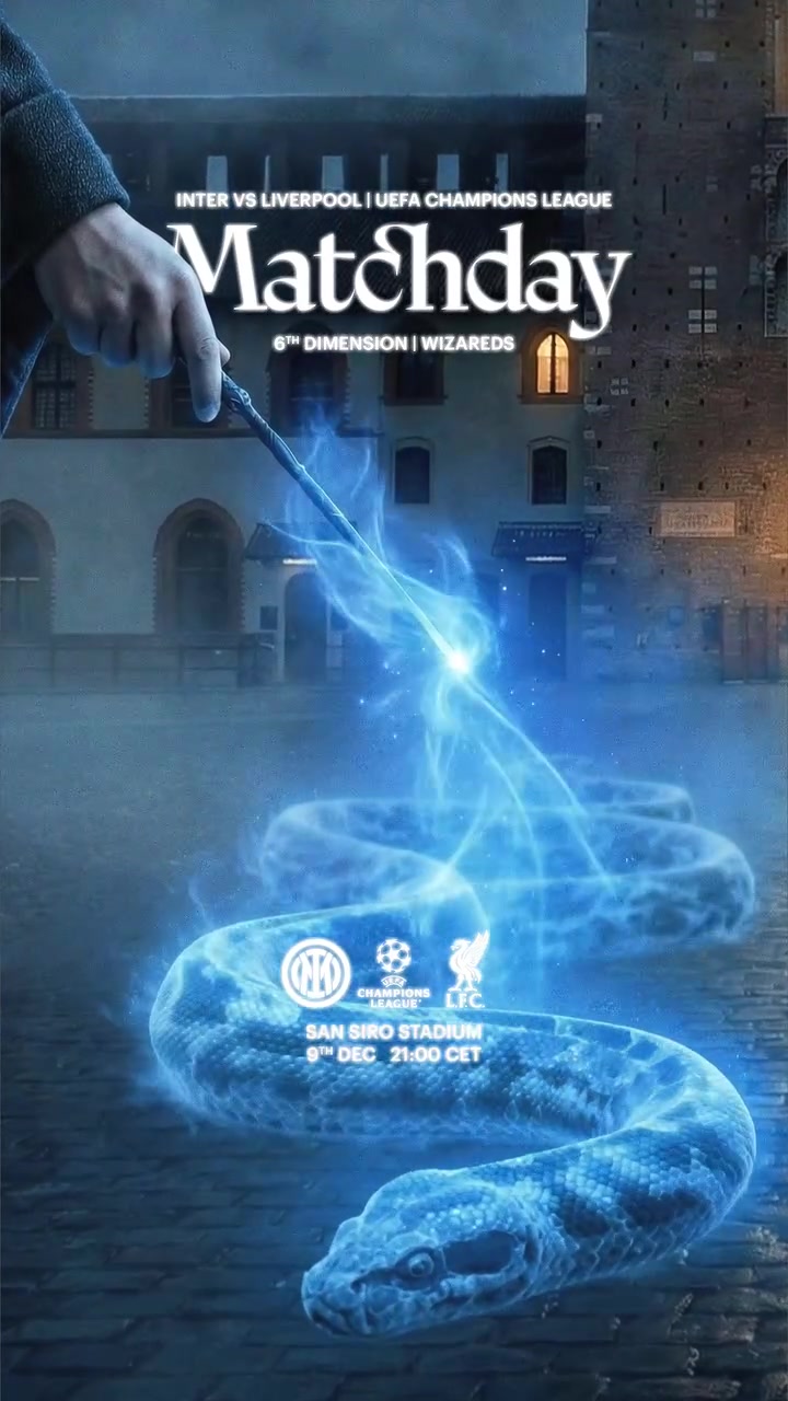 赛前,海外米兰官方社媒为此役制作了海报视频,视频以蓝黑灵蛇主题,配文写谈:魔杖高举🧙🏻♂️灵蛇骑士团已准备就绪🐍