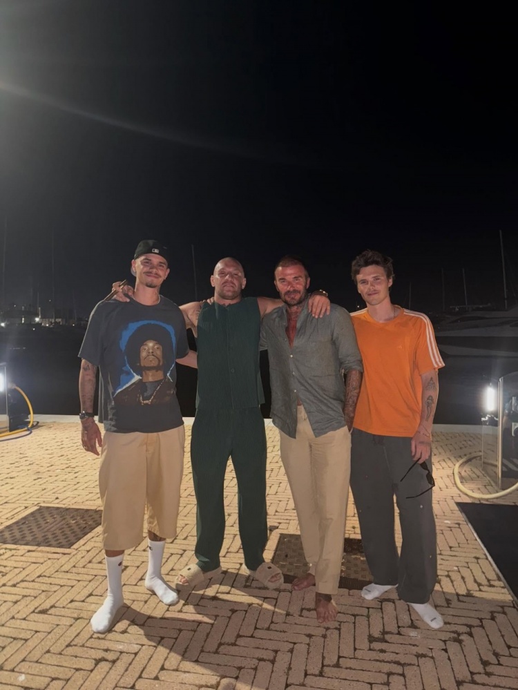 麦格雷戈社媒晒出与贝克汉姆过火家东说念主的合照,配文:“贝克汉姆,果然个了不得的家伙!”