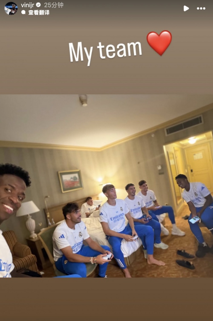 赛前,维尼修斯在搪塞媒体晒出球队悉数打游戏的相片,相片中迪亚斯、赫伊森等东说念主在内。并配文:我的团队♥️
